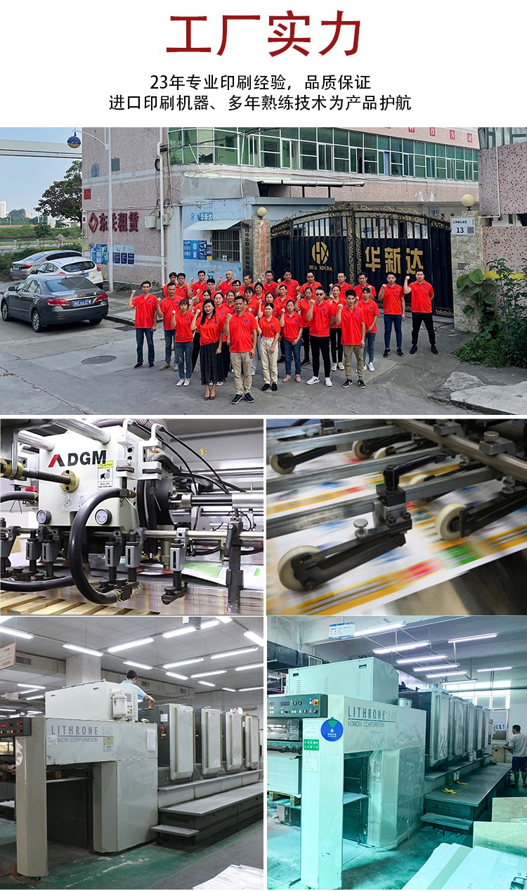 品質(zhì)把控:經(jīng)過二十幾年的沉淀積累,我司已建立完善的組織架構(gòu),從來料到出貨配套全檢,目前擁有世界先進配套印前,印后設(shè)備,多臺德國羅蘭全開、對開羅蘭6+1、高寶162、海德堡XL105、日本小森機五色對開印刷機,采用印刷前CTP色彩管理出版印刷技術(shù),配套過膠、裱坑、啤、燙,粘盒等后道設(shè)備,擁有200多名專業(yè)技術(shù)印刷團隊。
